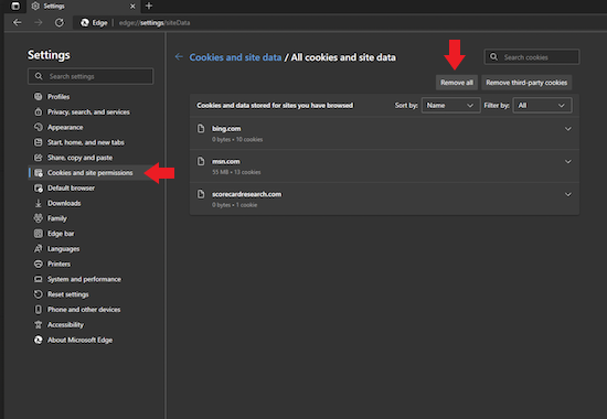 - Go to See all cookies and site data.