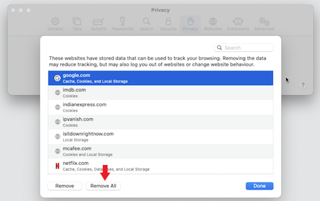 - Click Remove All to delete all cookies